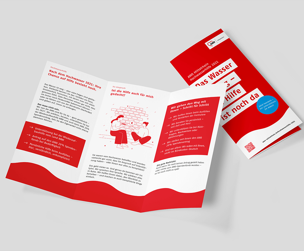 Mit der Kampagne zur Hochwasserhilfe unterstützt die AWO Mittelrhein Menschen in den vom Hochwasser 2021 betroffenen Regionen. In enger Zusammenarbeit haben wir eine mehrstufige, crossmediale Kommunikationsstrategie entwickelt, um bestehende Hilfsangebote sichtbar zu machen – nah an den Menschen, gezielt in der Region.